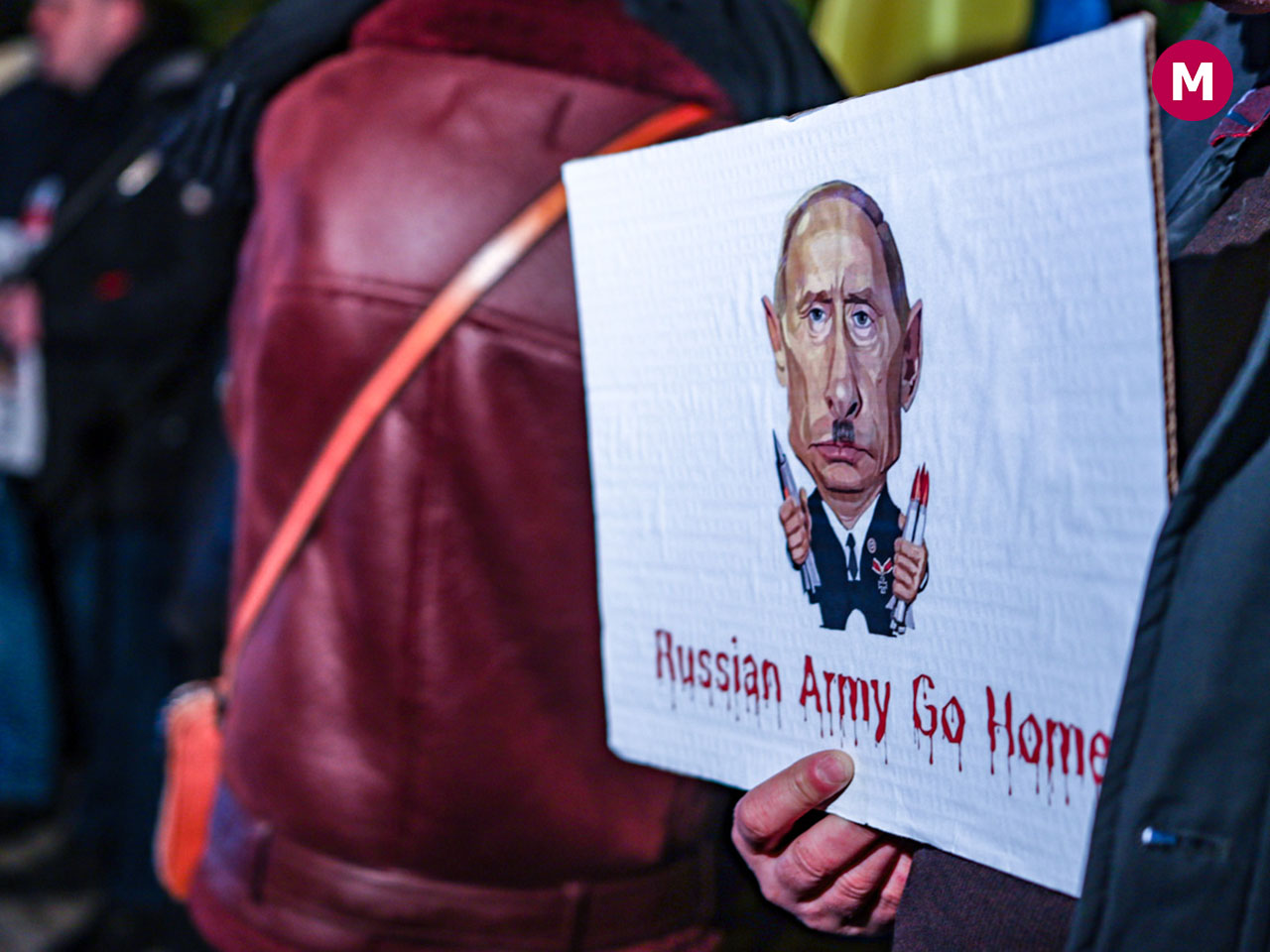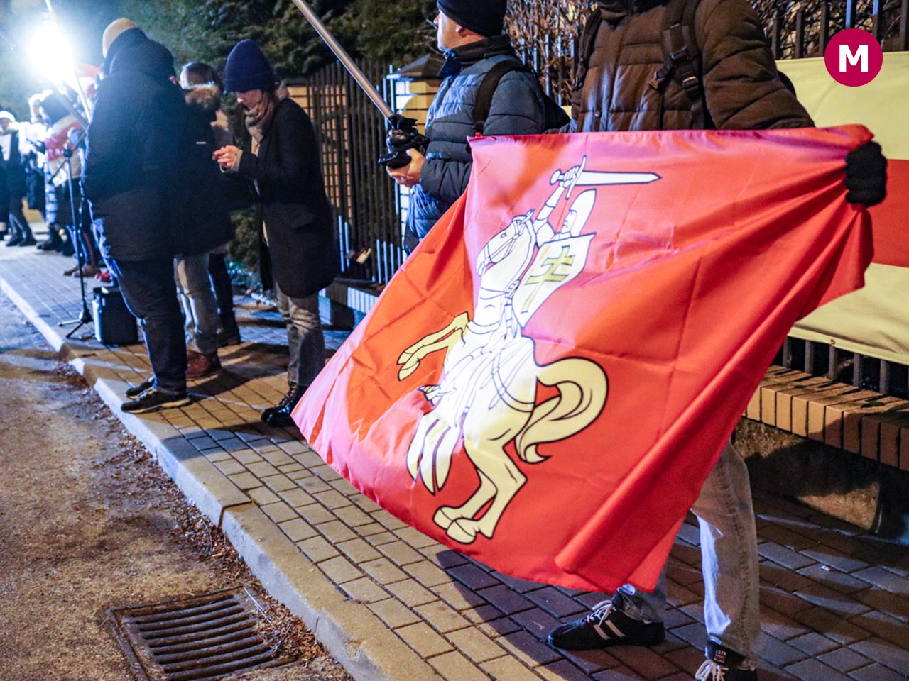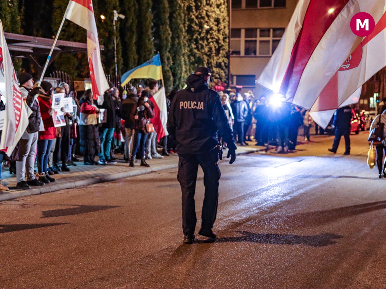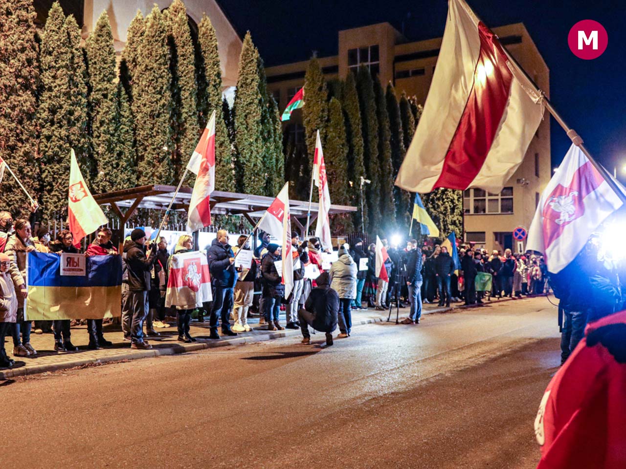 Сёння каля беларускага консульства ў Беластоку сабраліся ў падтрымку ўкраінскага народа. Напачатку акцыі ўключылі гімн Украіны.