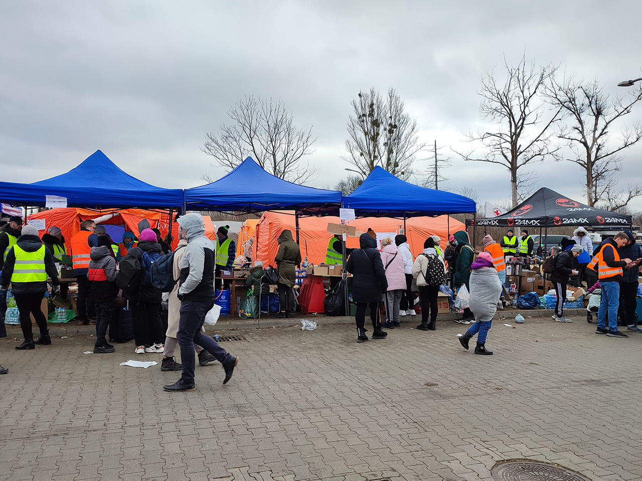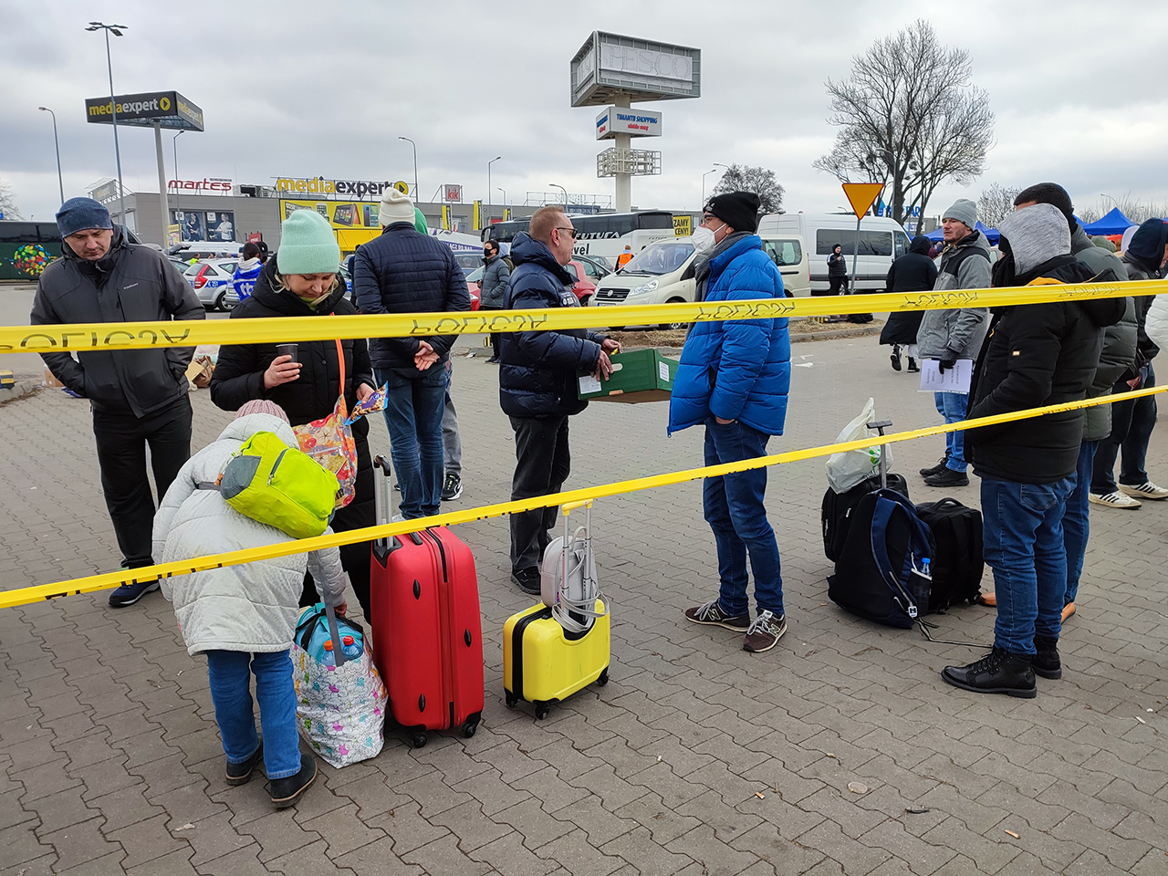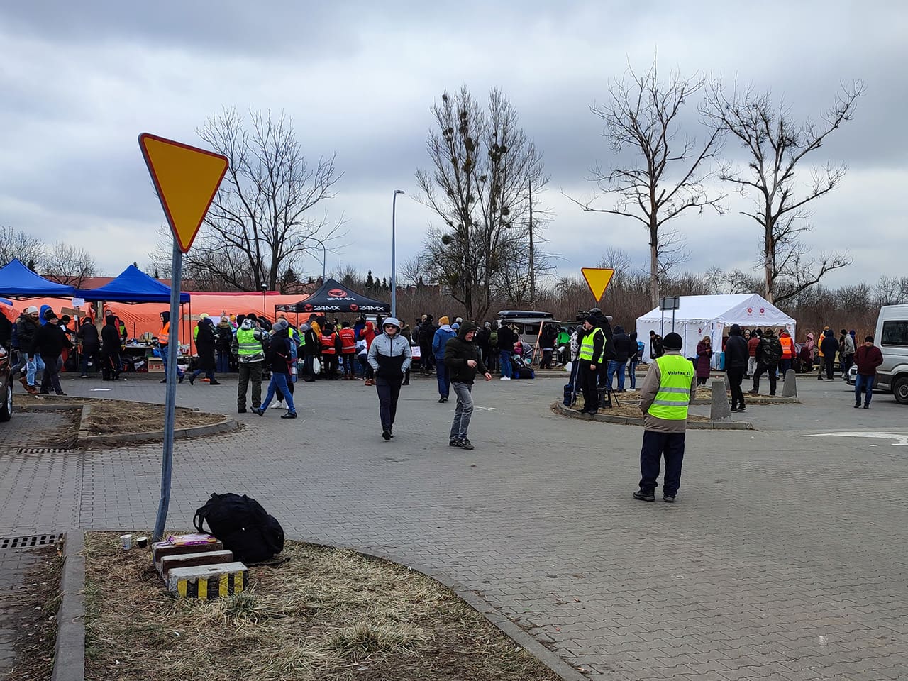 У валанцёрскіх чатах паведамілі, што мясцовыя службы арганізавалі рэгулярныя бясплатныя аўтобусы для ўцекачоў з Украіны ад Медыкі да Пшэмысля. Звычайны транспарт валанцёраў да самой мяжы паліцыя без вострай патрэбы не прапускала. Таму наступнай раніцай паехаў у Пшэмысль — там на паркоўцы ля крамы Tesco разбілі сапраўдны лагер для ўцекачоў.