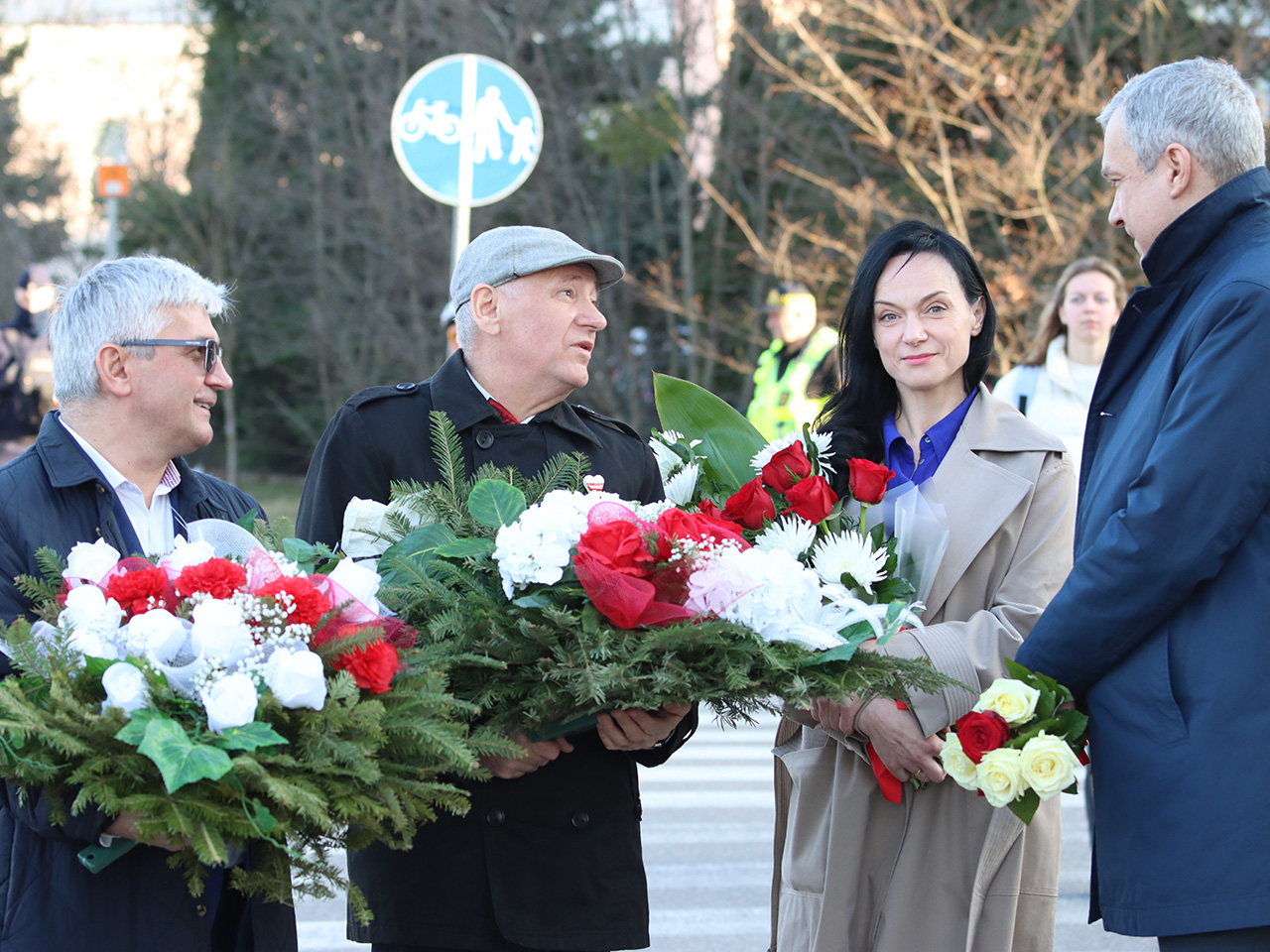 Урачыстасці пачаліся з ускладання кветак да муроў беластоцкай турмы. Справа ў тым, што тут у 1939 годзе ад рук бальшавікоў загінуў Макар Краўцоў — аўтар гімну БНР «Мы выйдзем шчыльнымі радамі». Пра гэтую гістарычную акалічнасць прысутным распавёў Яўген Вапа, галоўны рэдактар тыднёвіка «Ніва» і дырэктар Радыё Рацыя.