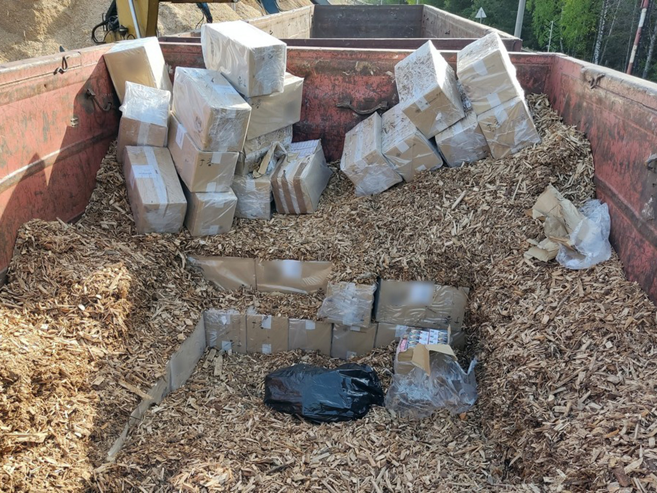 Пачки сигарет прятали в грузах щебня, в фанере и древесной щепе.