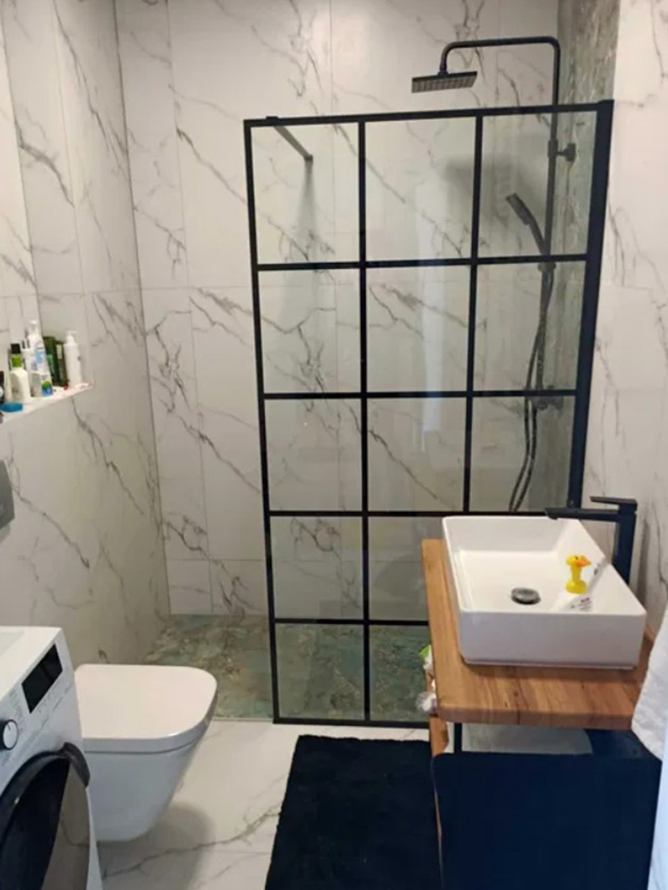 Квартира полностью оборудована техникой: кондиционер, пол с подогревом в ванной, стиральная машина с сушилкой, духовка, посудомоечная машина, индукционная плита, холодильник, вытяжка, пылесос, утюг, Smart TV.