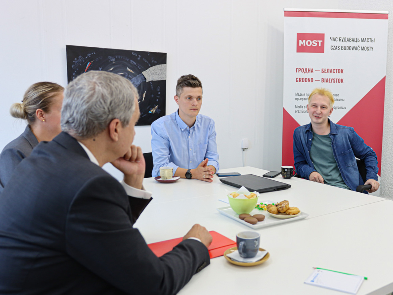 У нефармальнай гутарцы абмеркавалі працу беларускіх журналістаў у выгнанні, палітычную сітуацыю ў Беларусі і шмат іншага. Прапанавалі Паўлу Латушку весці калонку на MOST, прапанова яго зацікавіла — будзем чакаць першы матэрыял. Трэба нагадаць, што кіраўнік НАУ некалькі гадоў жыў у Беластоку, калі быў консулам.