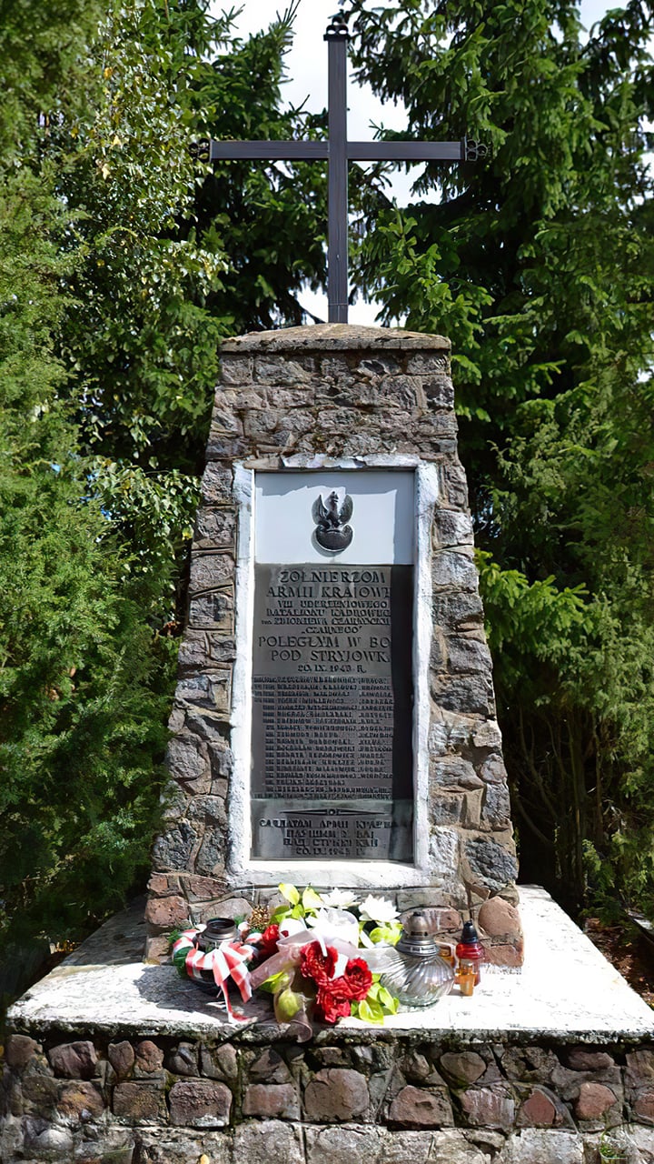 Згодна з гістарычнымі дадзенымі, 23 верасня 1943 года каля вёскі Стрыеўка нацысты напалі на Кадравы Ударны Батальён — партызанскае фармаванне ў складзе Арміі Краёвай. У выніку нападу загінулі 32 з 35 байцоў батальёна.
