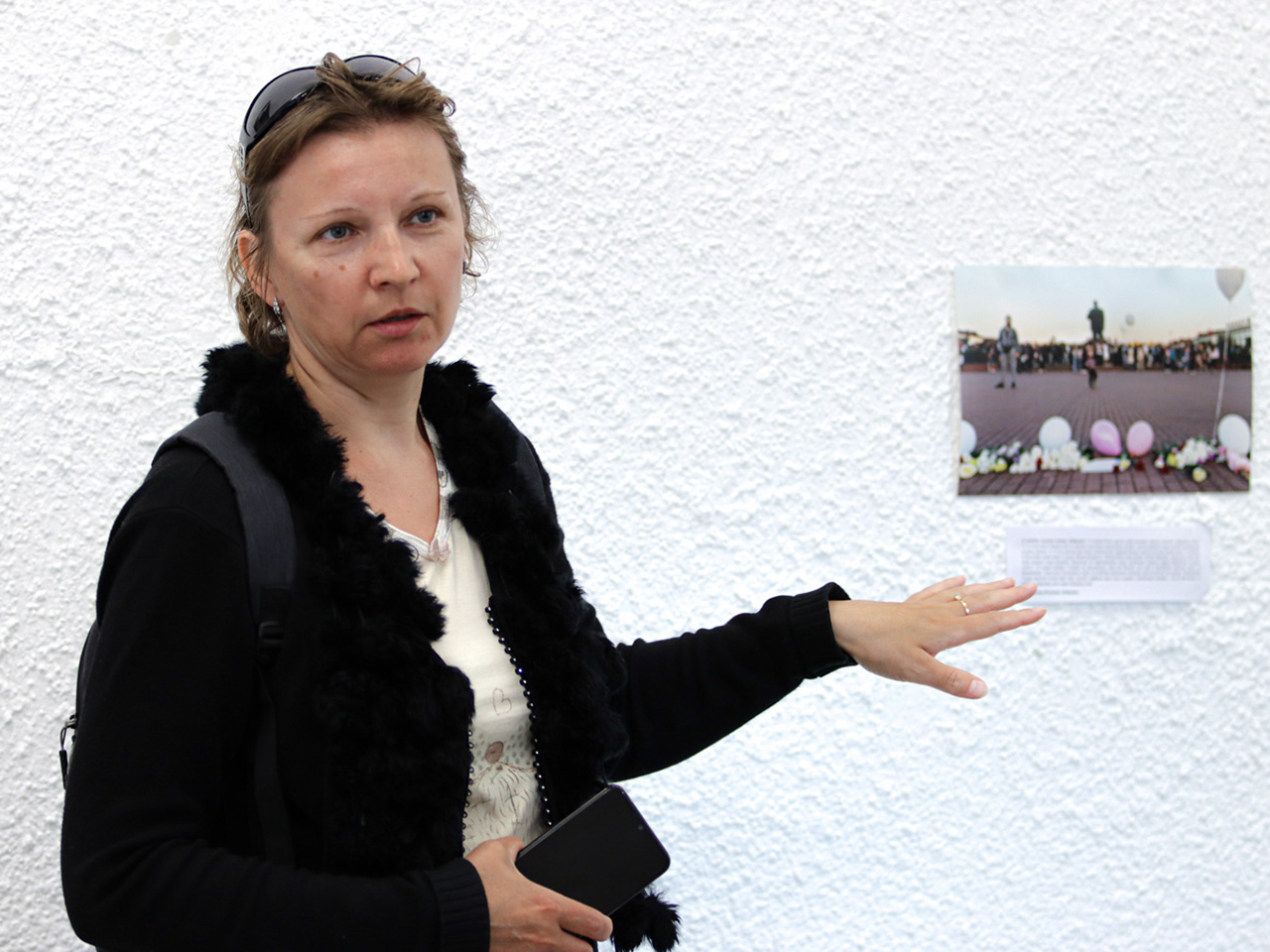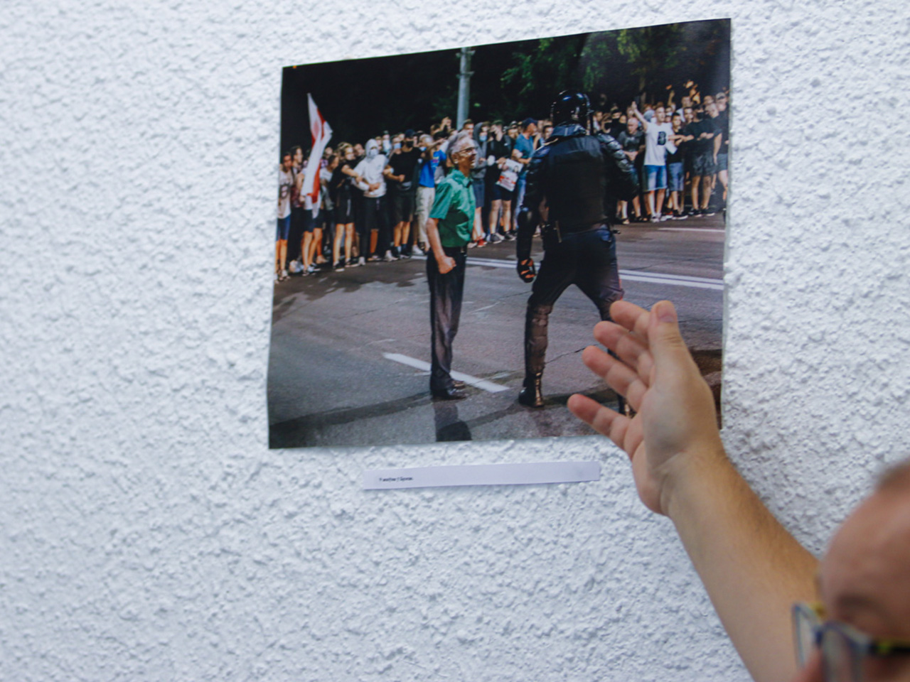 — Мы хочам паказаць самыя яркія фотаздымкі з розных гарадоў Беларусі. Такім чынам мы скіроўваем увагу на тое, што перамен чакалі не толькі ў Мінску, але і ў самых маленькіх населеных пунктах. Мы паказваем, якой цаной беларусы расплачваюцца за свой супраціў, — кажа арганізатарка выставы Зоя Хруцкая.