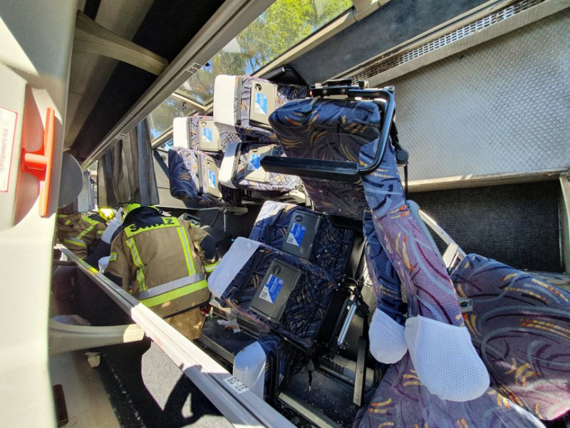 Водитель автобуса рассказал, что уснул за рулём. Польские пожарные организовали на месте происшествия палатку, в которой оказывают первую медицинскую помощь пострадавшим в аварии.