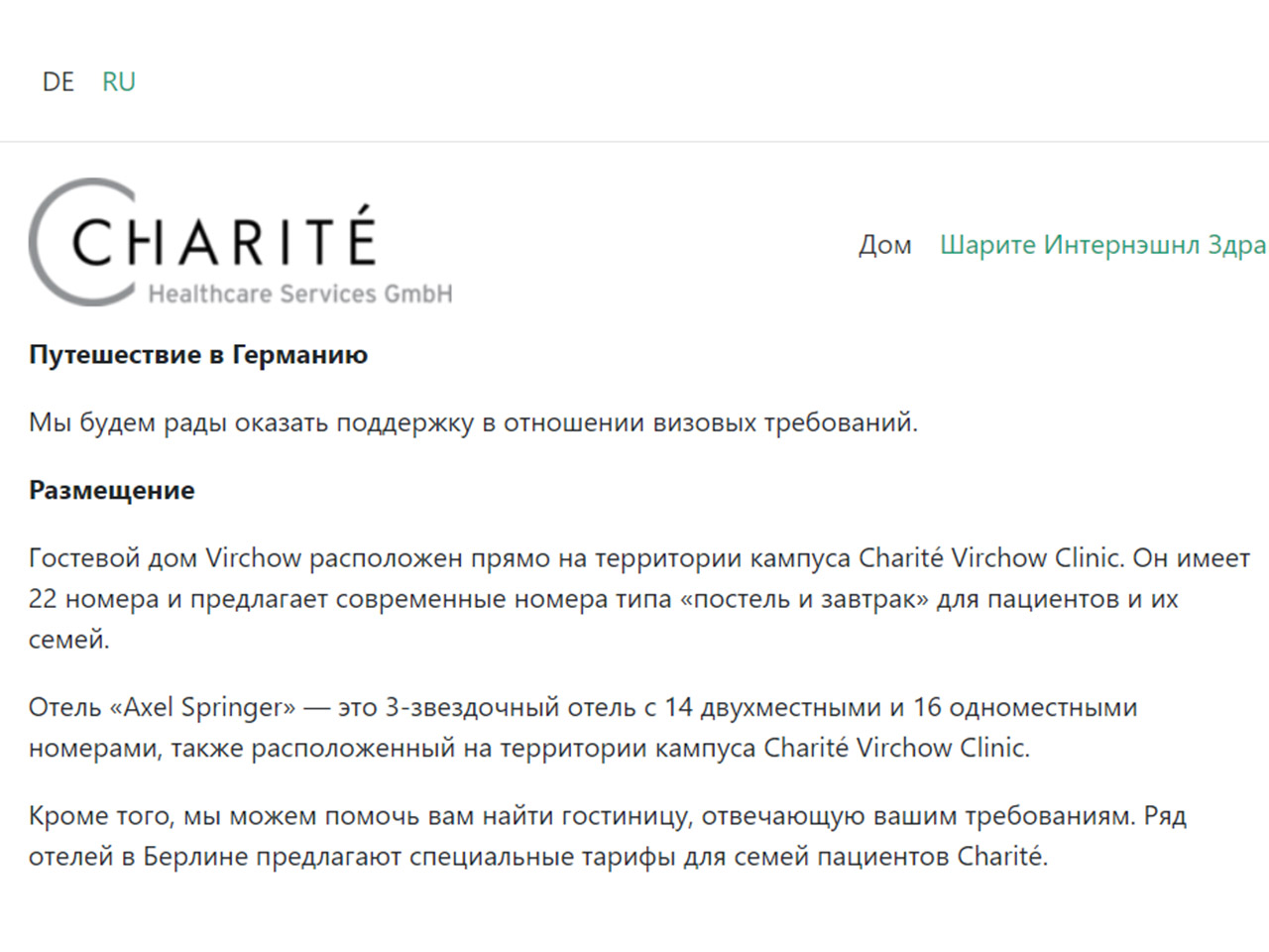 Обследования и дальнейшие манипуляции в Варшаве, девушке по-прежнему предоставляются БЕСПЛАТНО. Но не дожидаясь ответа из Варшавской клиники, она подает запрос в немецкую клинику Шарите. Клиника известная на постсоветском пространстве со времён Раисы Горбачевой, которая там лечилась от онкологии. Клиника частная и специализирующаяся на сложной онкологии.