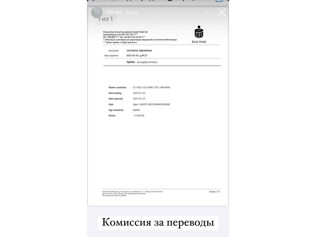 Ещё до первого отчета, 23-25 января Виктория успевает сделать два перевода польских злотых, за которые она платит комиссию.