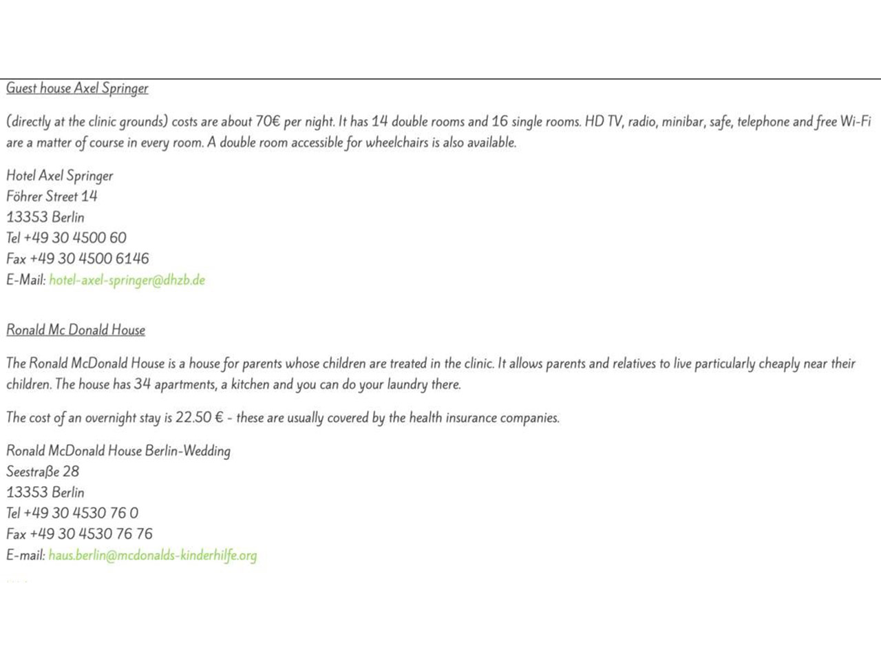 - Предоставить убедительное и подтвержденное документально обоснование необходимости лечения и операции именно в Шарите и невозможности его провести бесплатно или за меньшие суммы в медучреждениях Беларуси или Польши.