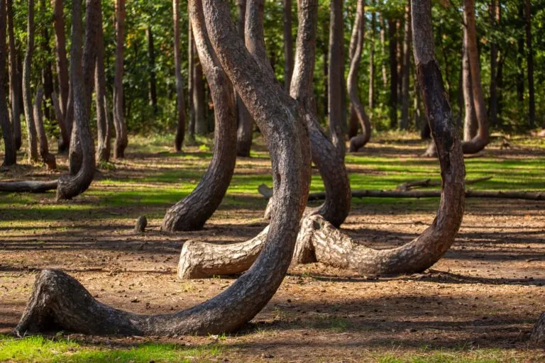 В Западно-Поморском воеводстве есть загадочный сосновый «Кривой лес» (Krzywy Las), который давно удивляет путешественников. На небольшой лесной поляне растет около 100 сосен, стволы которых у основания изогнуты почти под прямым углом, а затем выпрямляются вверх. Тайна их происхождения до сих пор не разгадана: кто-то говорит о вмешательстве человека, кто-то — о гравитационных аномалиях или даже инопланетянах.