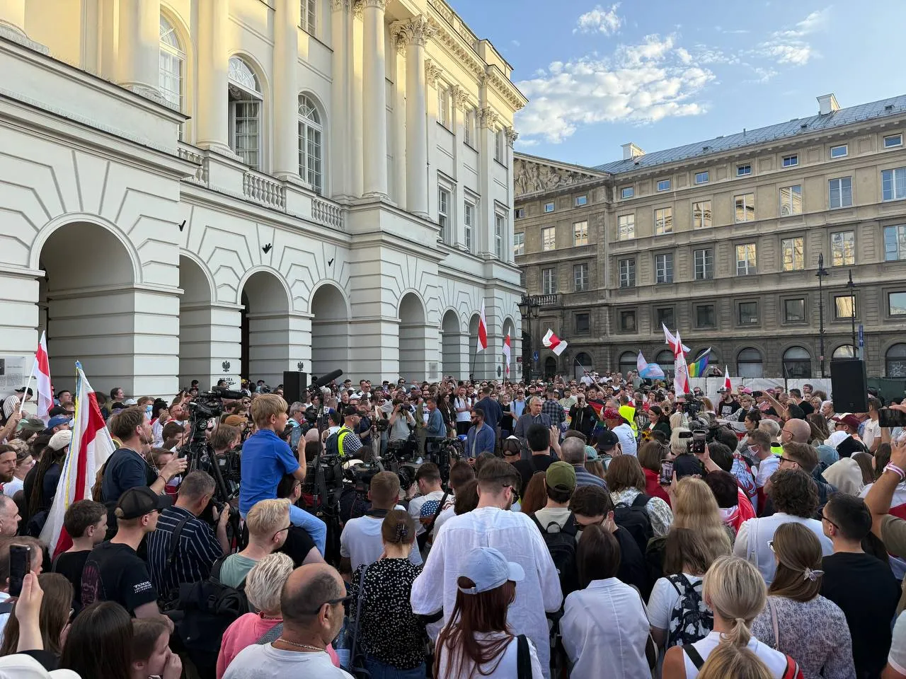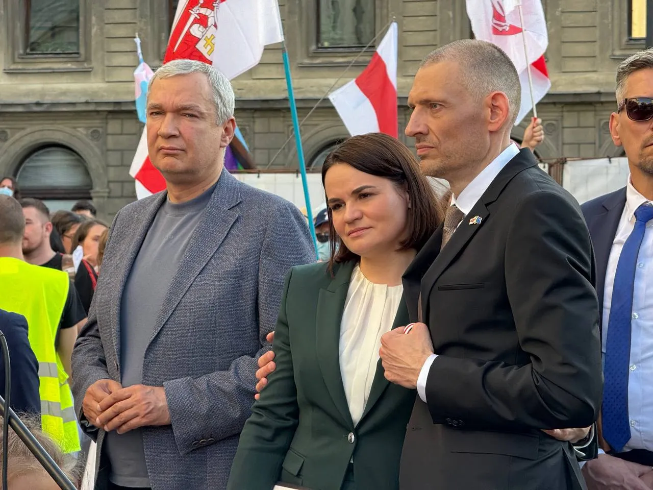 Перед митингом Тихановские встретились с президентом Польши Анджеем Дудой и министром иностранных дел Радославом Сикорским.