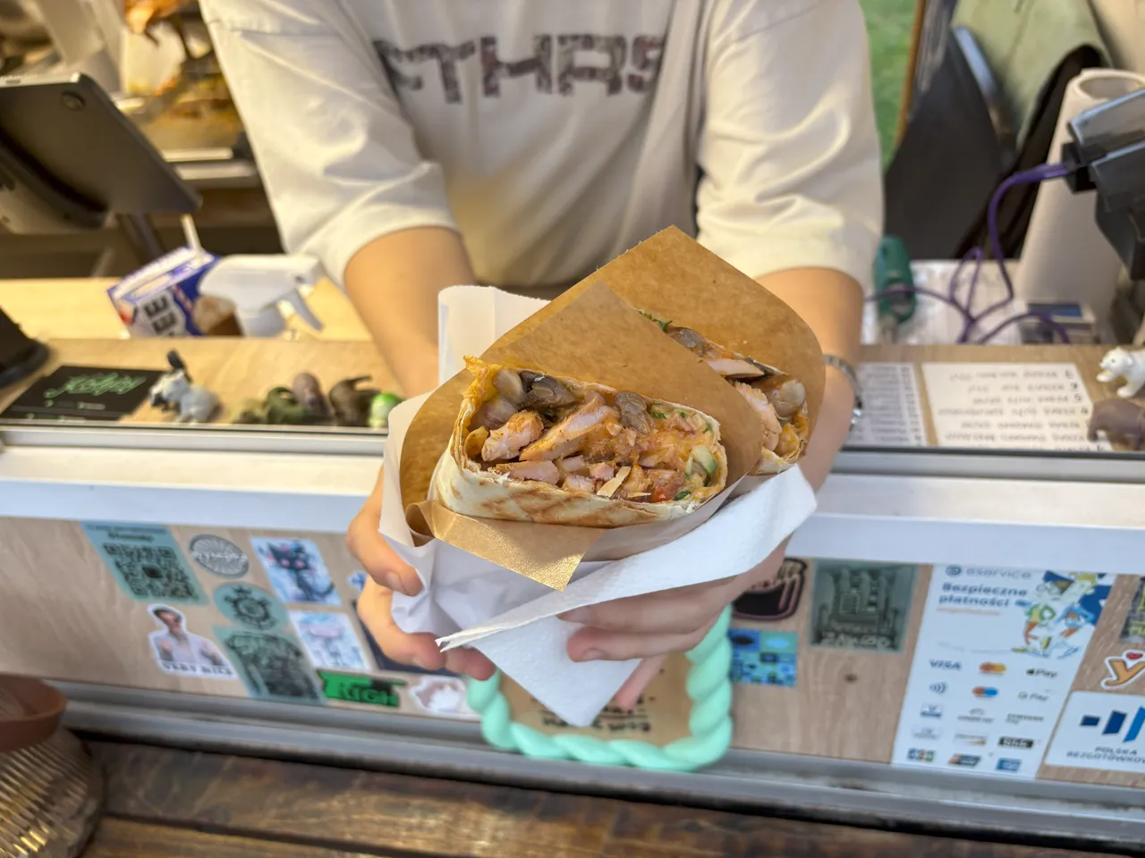 — Когда мы только открылись, клиенты интересовались: «А что такое лаваш, а почему так много овощей?» Мы объясняли: «Делам ваш польский кебаб, но немного иной — попробуйте, вам понравится». Беларусам и украинцам объяснять ничего не приходилось. Они подходили к фудтраку и радовались, что поедят такую же шаурму, как дома, — вспоминает Любовь.