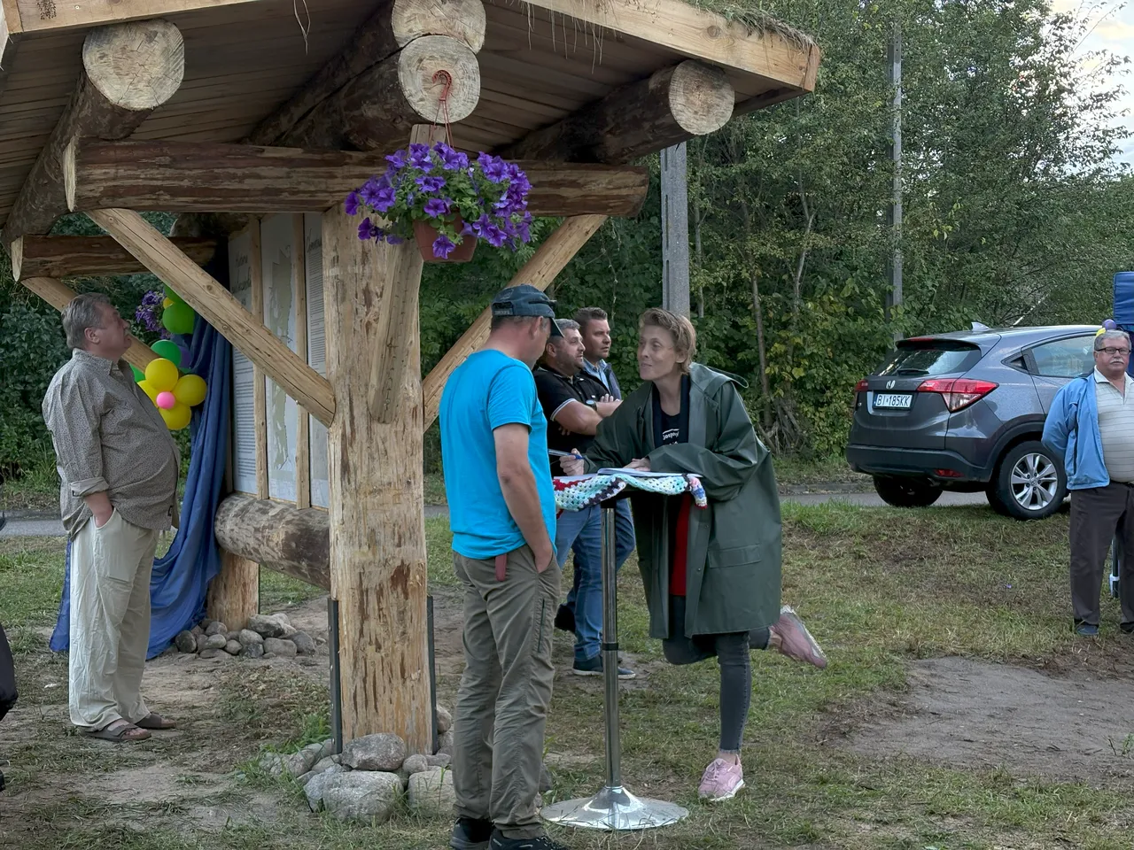 Точка притяжения — большой деревянный стенд, который установили на одном из участков. На нем — история приграничных деревень. Проектировал и устанавливал стенд беларус Артур, который с недавнего времени живет в Бобровниках.