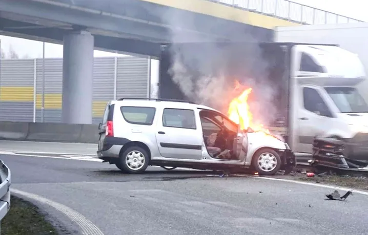 В Польше беларус уснул за рулем. Его спасли из пылающего автомобиля
