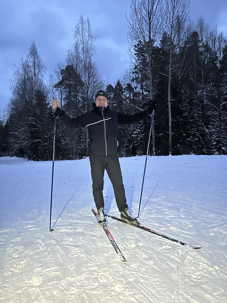 На лыжах Виталий наездил 10 километров, а перед этим с утра пробежал 16 километров.
