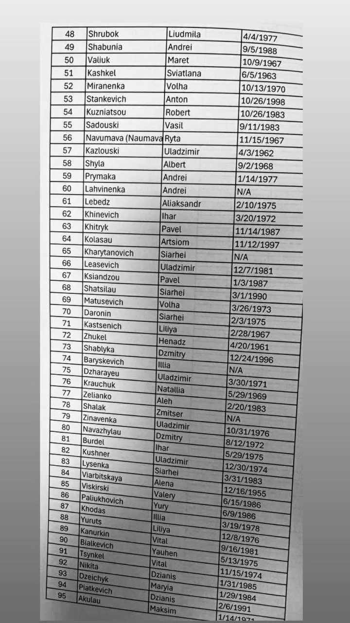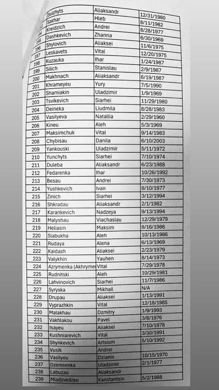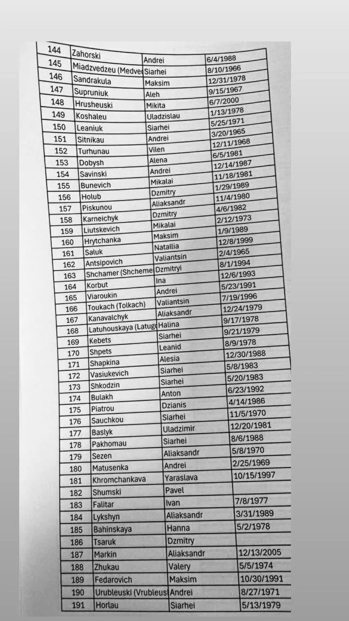 В июне 2025 года в результате переговоров освободили 14 человек, включая Сергея Тихановского. В сентябре освободили 52 политзаключенных. Политик Николай Статкевич отказался от принудительного вывоза в Литву, после чего его снова арестовали. В итоге на свободе в эмиграции оказался 51 человек. В декабре Лукашенко освободил самую крупную партию — 123 политзаключенных. Среди них были Виктор Бабарико, Мария Колесникова и Алесь Беляцкий.